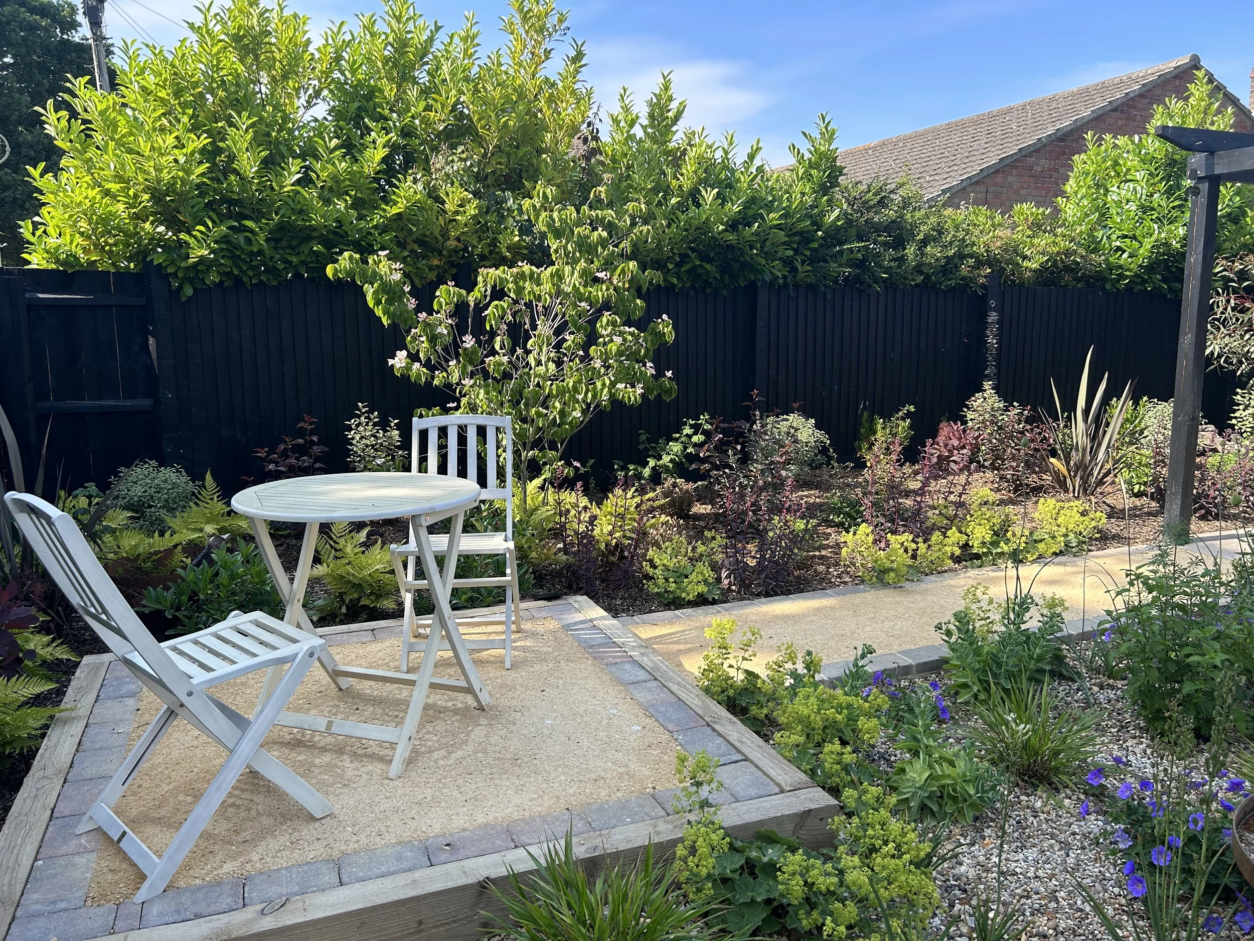 We didn’t know where to start with our sea of mud and weeds new build plot. Zoe translated our requirements and ideas into a wonderful design. Reassuringly she managed her respectful, competent, hardworking skilled team to complete our transformation in 11 days! Great follow up and after service. Competitively priced, lovely to work with and highly recommended. Rare to be able to say this.
