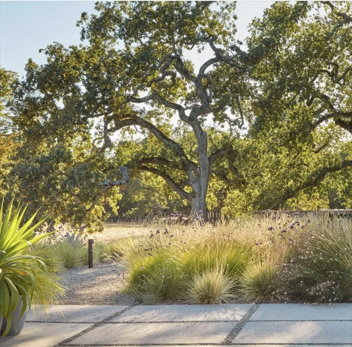 What this trend is - UK hardy drought tolerant planting to reflect dreamy holidays abroad. The painterly inspiration sets a carefully curated colour palette of muted sun bleached tones. A mediterranean sun trap with coastal influences. Saplings, grasses and characterful trees hint are semi-abandonment of a bygone era. Walls, tall pines, holm oaks and olive trees provide protection from strong winds and summer sun in exposed locations. The planting is grey-green with touches of antique white and mauve to echo Tuscany, Provence or Croatia.