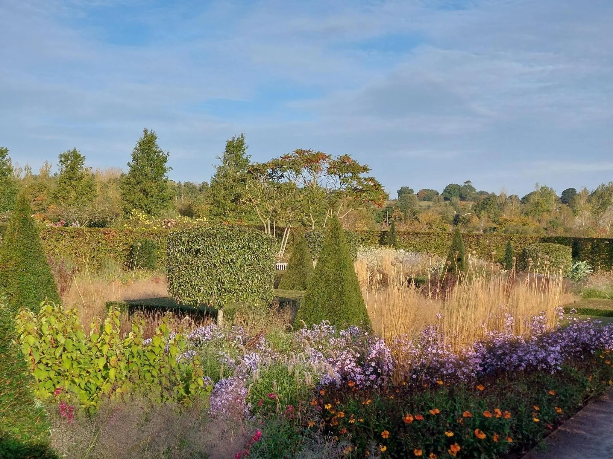 How to achieve it at home - This is for the medium to large garden as the concept needs scale for impact to deliver wow-factor. On a small scale this will quickly become cluttered and disjointed. The borders will need constant maintenance to control weeds and tired or thin herbaceous perennials replaced regularly. All clipped structures will need telescopic hedge trimmers (expensive machinery) and a strong person to wield them - as a strong woman who landscapes professionally, I'm still unable to handle them. There is no respite from the sun in this style of garden, and with our increasingly hot summers I feel it's best suited to larger gardens with professional help.